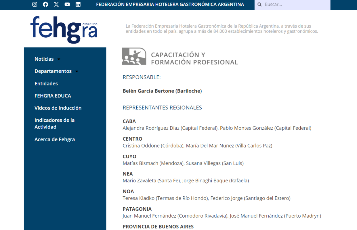 ✔️Vocal titular – Responsable de Cámara Gastronómica: Guillermo Natali